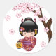 Pegatina Redonda Muñeca Sakura Kokeshi - Chica Geisha japonés