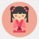Pegatina Redonda Muñecas japonesas Kokeshi rosadas