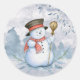 Pegatina Redonda Muñeco de nieve acuarela invierno Navidad moderno