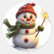 Pegatina Redonda Muñeco de nieve alegre
