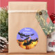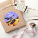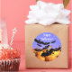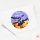 Pegatinas divertidos con mi arte original de murciélagos volando fuera de calabazas, bajo una luna llena. El texto del personalizable dice "¡Feliz Halloween!"