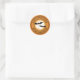 Pegatinas de Feliz Halloween con dos murciélagos volando frente a la luna en un cielo naranja. Texto en negro "Feliz Halloween" con tu nombre personalizado. Utilizar como sellos de sobres, pegatinas para regalos y favores, embalaje de productos, manualidades y scrapbooking etc