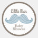 El diseño de una bonita ducha de bebé con bigote azul a la antigua. El texto dice PEQUEÑO HOMBRE. Personalizable. ¡PinkInkArt original!