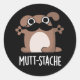 Pegatina Redonda Mutt-stache Funny Dog Mustache Pun Dark BG