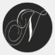 N monograma con fondo negro, guión blanco inicial y borde plateado. Perfecto pegatina para sus sobres bodas, bolsas de regalo u otra decoración para su elegante boda.