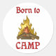 Un camper disfrutará de este divertido diseño con una brillante hoguera y las palabras - Nacido en el campamento. Hace un gran regalo para un amante del camping.