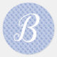 Pegatina Redonda Nacimiento de bebé Monograma de cigüeñas azules