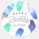 Diseñados para coincidir con las invitaciones de cumpleaños de nuestros niños de color agua, estos pegatinas personalizados adorables cuentan con un borde de paletas de color agua en verde y azul. "Cumpleaños feliz [nombre]" aparece en el centro con letras extravagantes.