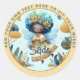Pegatina Redonda Nacimiento de un hada africana Princesa Verde azul