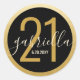 Personalizado Pegatina de Cumpleaños Personalizado de Negro y Oro para un Fiesta 21 de Aniversario Moderno y Elegante con Faux Relieve metalizado dorado Circle Border. Agregue su propio nombre, fecha y edite la edad para cualquier celebración de fiesta de cumpleaños. Perfecto para pegarse en el embalaje partidario, como sellos para sobres de invitación o como recordatorio de Guardar la fecha.