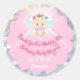 Pegatina Redonda Nacimiento Niña Ducha Purpurina Rosa Princesa
