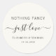 Un pegatina de crema clara de moda para tus invitaciones a la boda, favores y gracias a las tarjetas que presentan "Nothing Fancy Just Love" (Nada más el amor justo), mostradas en una mezcla de letras simples y un guión elegante con chispas, y tus nombres y fecha de boda o recepción en tipografía serif clásica.