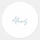 Pegatina Redonda Name Calligraphy Script Plain Simple White Blue