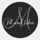 Pegatina Redonda Names & Initial Monogram Wedding Sticker Black