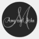Pegatina Redonda Names & Initial Monogram Wedding Sticker Black