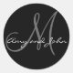Pegatina Redonda Names & Initial Monogram Wedding Sticker Black