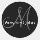 Pegatina Redonda Names & Initial Monogram Wedding Sticker Black
