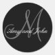 Pegatina Redonda Names & Initial Monogram Wedding Sticker Black