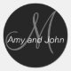 Pegatina Redonda Names & Initial Monogram Wedding Sticker Black