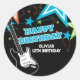 Pegatina Redonda Naranja azul de la guitarra de cumpleaños estrella