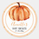 Pegatina Redonda Naranja Calabaza Caída Baby Shower Gracias