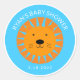 Este alegre pegatina adorable de aspecto animal con un encantador naranja personalizado pequeño ilustracion de cabeza de cachorro de león y personalizado de texto de la ducha de bebé y fecha en azul brillante dentro de un círculo decorativo blanco es una buena elección para tu ducha de bebé, cumpleaños de bebé, etc. Personalizar que sea especial.
