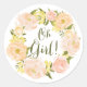 Pegatina Redonda Naranja de acuarela Peonies Wreath Baby Shower