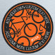 pegatinas redondos personalizados con un diseño gráfico contemporáneo de formas de bicicleta. Ya sea que esté organizando una carrera, promocionando su club de ciclismo, preparándose para un desafío deportivo escolar, o celebrando una reunión de equipo, esta plantilla puede ser personalizada para adaptarse a su evento. Agregue texto al borde circular y la fecha de año dentro. ¡Ideal para equipos de ciclismo, competencias, paseos de caridad, tours, eventos comunitarios y más! Colores impresos: negro, naranja y blanco.