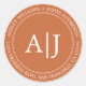 Moda, moderno y simple retorno de boda monograma dirección pegatina redondo clásico con sus iniciales monograma en tipografía blanca elegante sobre un fondo naranja quemado. Simplemente agrega tu nombre y dirección. Diseñado exclusivamente para usted por Happy Dolphin Studio. Si necesita ayuda o productos coincidentes, póngase en contacto con nosotros en happydolphinstudio@outlook.com. ¡Estamos encantados de ayudarle a hacer de su boda el día más hermoso!