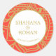 Pegatina Redonda Naranja de estilo indio Boda moderno de oro