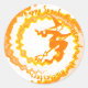 Pegatina Redonda Naranja de Halloween volando bruja hechizo texto