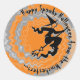 Pegatina Redonda Naranja de Halloween volando bruja magia hechizo d