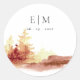 Pegatina Redonda Naranja de roya Árboles caídos amarillos Monograma