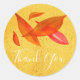Pegatina Redonda Naranja dorado Otoño Hoja gracias