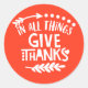 Naranja En Todas Las Cosas Da Gracias Pegatina De La Ronda De Acción De Gracias.