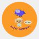 Pegatina Redonda Naranja Feliz Cumpleaños