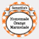 Pegatina Redonda Naranja Gingham Marmelade, Jelly, Jam Jar/Lid Labe