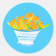 Cuta fruta naranja colorida en acuarela por artista ilustrador. Diseño vibrante y afrutado en naranja y azul.