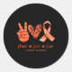 Pegatina Redonda Naranja Leopard Peace Love Cure Leukemia Sensibili