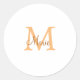 Pegatina Redonda naranja marrón simple de añadir nombre monograma m