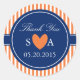Pegatina Redonda Naranja monograma y franjas blancas con azul real