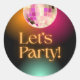 Naranja negra Neon Let's Fiesta pegatina. Añada este divertido pegatina con colores de neón audaz con una bola disco rosada a cualquier sobre de invitación a la fiesta.
