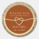 Moderno, elegante, quemado naranja y purpurina boda de oro gracias pegatina por favores, con corazón romántico de cuerda y simple escritura caligráfica.