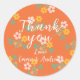 Pegatina Redonda Naranja Retro Daisy Bouquet Pattern Gracias
