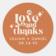 Este Naranja Retro Moderno y Boda Crema Gracias Pegatina Redondo Clásico es una excelente manera de añadir un poco más de personalización a su gran día. La paleta de colores naranja y crema le confiere un aspecto retro de lo más moderno pero vintage. Diga gracias con amor y gracias.