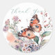 Romántico verano flores rosadas con mariposa naranja gracias pegatinas redondos con nombre y texto personalizable para regalos elegantes y de moda!