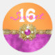 Pegatina Redonda naranja rosa "dulce dieciséis" de 16 años