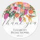 Pegatina Redonda Naranja Rosa Flores Tropicales Script Gracias