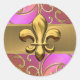 Pegatina Redonda Naranja rosa y dorado Filigree Swirls Fleur de Lis