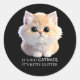 Pegatina Redonda Naranja suave y suave y gato gatito blanco
